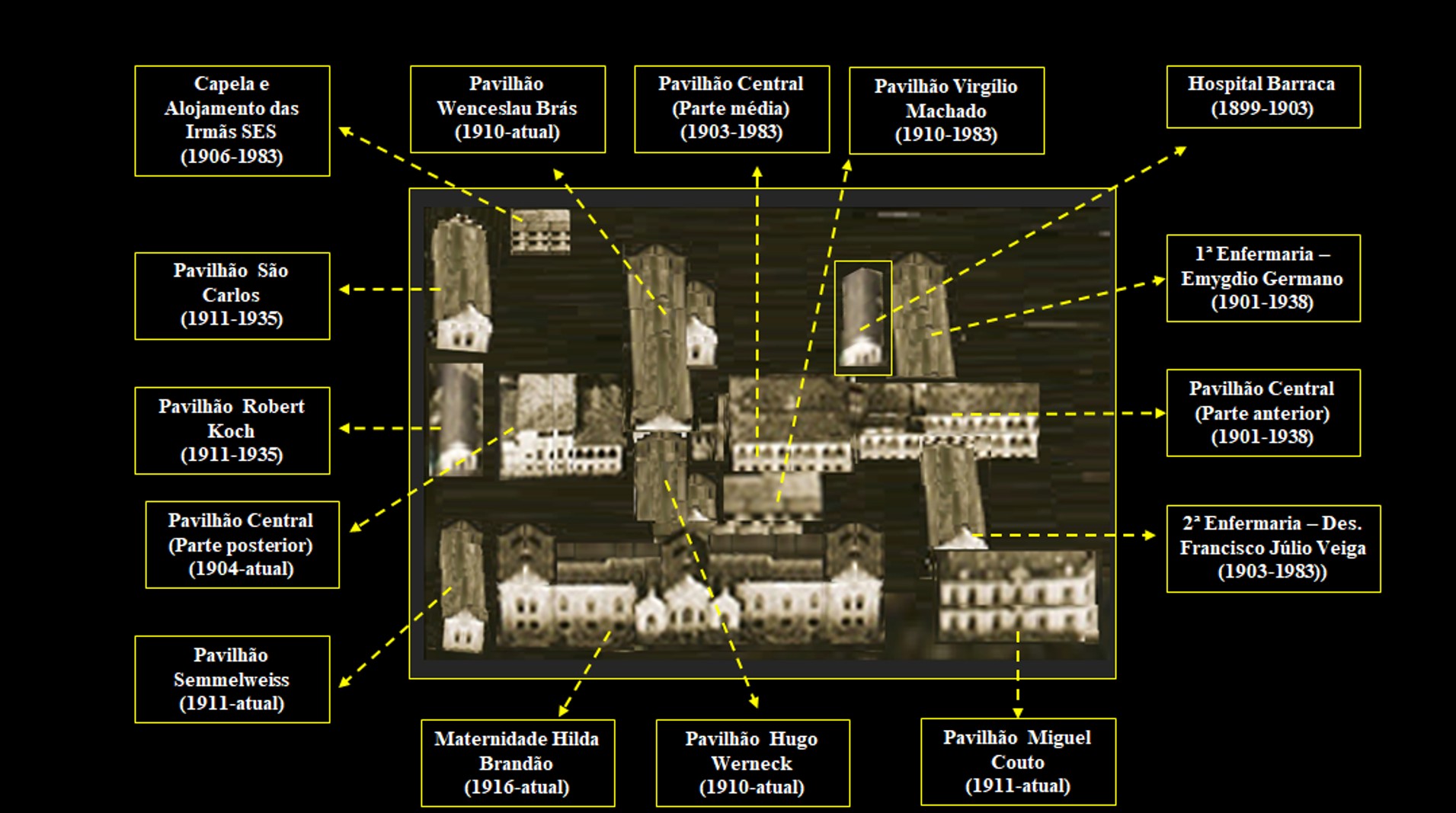 O Pavilhão Central e a Primeira foram demolidos em 1941 para a construção do atual Hospital Central.